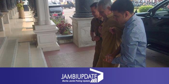JAMBIUPDATE.COM, KUALATUNGKAL - Diantar oleh kedua anaknya, Bupati Tanjung Jabung Barat H Usman Ermulan untuk pertama kalinya gantor di kantor bupati Tanjung Jabung Barat Rabu (8/10) pagi pukul 10.00 WIB. Senyum mengembang tampak di wajah sang bupati dengan dipapah kedua anaknya.