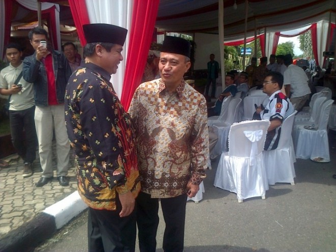 JAMBI - Kandidat incumbent, Hasan Basri Agus (HBA) dan Hazrin Nurdin, Ketua DPW PAN Provinsi Jambi tampil mesra dalam acara syukuran di kediaman Sutan Adil Hendra (SAH). Hazrin yang notabene paman kandung Zumi Zola tersebut enggan berkomentar banyak saat disinggung wartawan mengenai kedekatannya tersebut. "Biasa saja, kita selalu komunikasi dengan semua orang," ujarnya seraya tertawa. Demikian juga halnya ketika disinggung soal arah dukungan PAN. "Nanti dulu, Pilgub masih lama," elaknya. (cas)