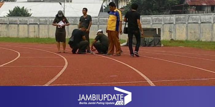 Penyidik Kejati Jambi cek lintasan atletik di Stadion KONI Jambi
