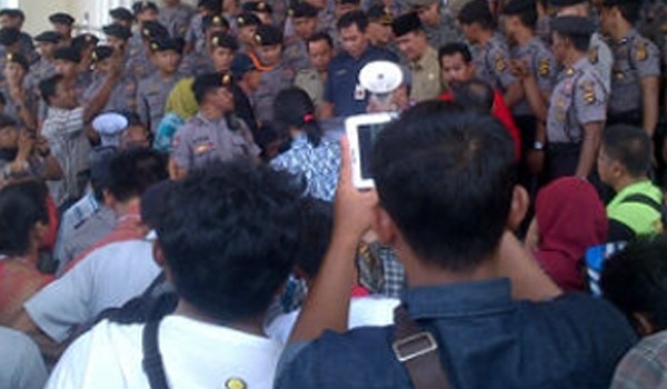 "Cabut izinnya, ngapain mereka di Jambi ini kalau berbuat sewenang-wenang," kata pendemo.