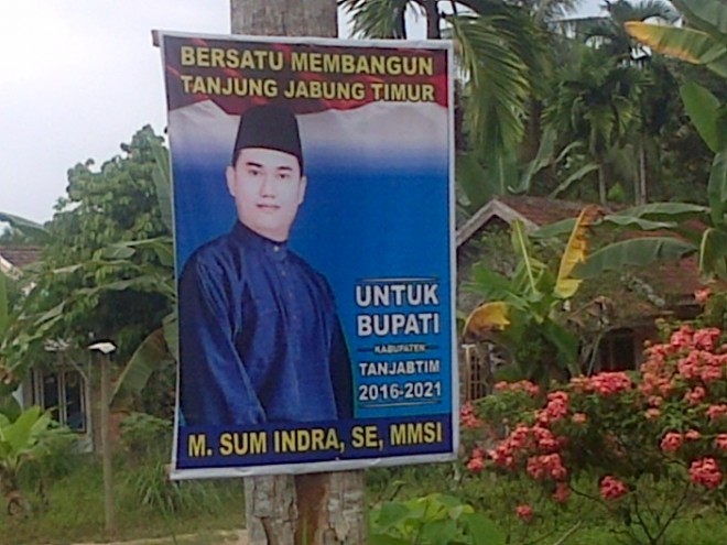 Ini terlihat dengan banyaknya baleho mantan Wawako Jambi itu di ruas-ruas jalan utama di Kota Muara Sabak. Bahkan, baleho Sum Indra sudah terlihat begitu masuk Tanjab Timur dari arah Muaro Jambi.