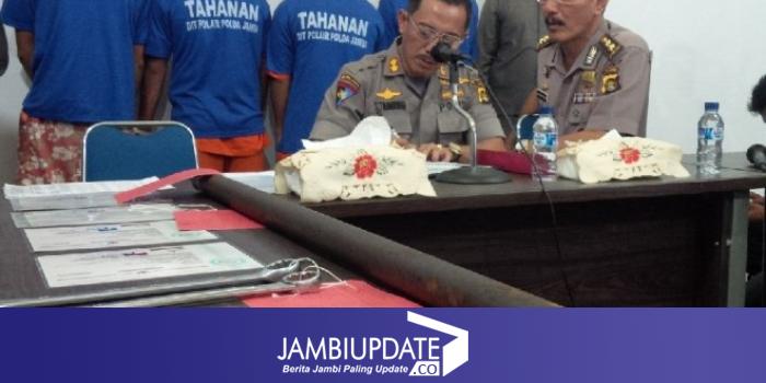 iklan Empat Tersangka dan Barang Bukti yang diamankan di Mako Pol Air Polda Jambi