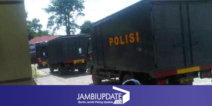 JAMBIUPDATE.COM, SAROLANGUN- Pasca pembakaran Mapolsek Limun, sekitar pukul 13:00 WIB Dua Pleton Brimob dari Pemenang, Kabupaten Merangin tiba diPolres Sarolangun Sabtu siang (25/4).