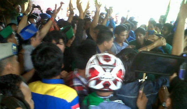 JAMBIUPDATE.COM, BANGKO - Demo ratusan aktivis yang tergabung dalam BEM dan Organisasi Kemahasiswaan Se Provinsi Jambi  sekitar Pukul 10.30 Wib siang ini (27/4) berakhir ricuh.