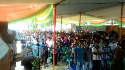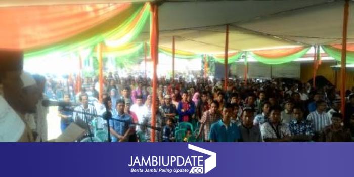 "Warga Singkut siap mendukung dan memenangkan Zola - Fachrori," kata Hajar Sayuti membacakan pernyataan sikap yang diikuti oleh ribuan warga.