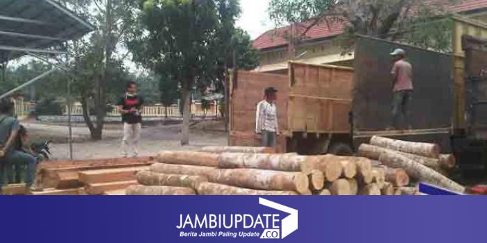Kasat Reskrim Polres Sarolangun, AKP Buheri, dikonfirmasikan, mengatakan, dua unit truk yang berisi kayu berbentuk bulat dan bantalan diamankan di lahan PT Samhutani.