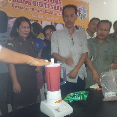 "Hari ini kita buat jus ekstasi. Ini cara pemusnahan kita dengan diblender dan nantinya dimasukkan ke air dalam ember," ujar Direktur Narkoba Polda Jambi, Kombes Pol Krisnandi, Senin (12/10).