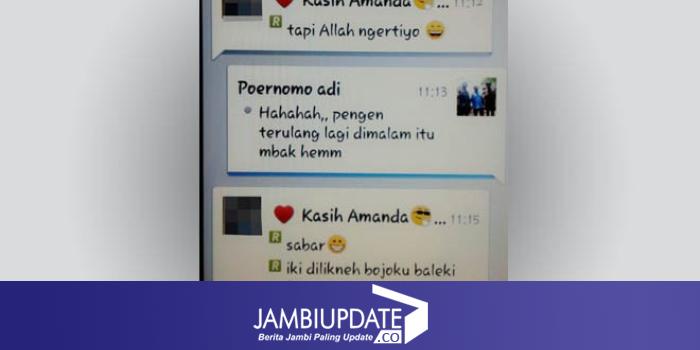 JAMBIUPDATE.COM, KERINCI Berbuatan bejat diduga dilakukan Wakil Ketua DPRD Kerinci, Adi Purnomo. Bahkan, terlihat di pesan BBM SK yang merupakan istri IP, sang wakil rakyat ingin mengulangi perbuatannya.