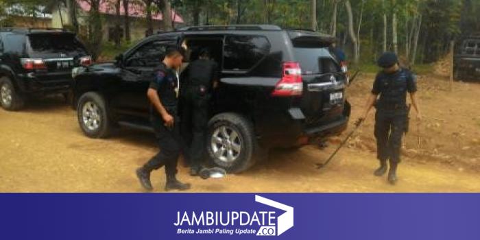 Pantauan jambiupdate.com di lapangan Jumat (30/10) tampak lima orang anggota brimob melakukan pemeriksaan sejumlah mobil yang akan mengikuti iringan orang nomor orang satu di Indonesia ini dengan mengunakan metal detektor.