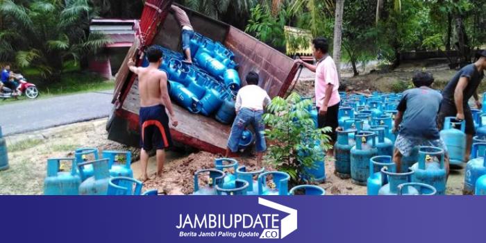 JAMBIUPDATE.CO, MUARABULIAN - Truk bermuatan gas elpiji 12 kg dari arah Tembesi terbalik di RT 01 Desa Kuali Pecah, Kecamatan Bajubang, Kabupaten Batanghari pada Jumat (15/1) sekitar pukul 17.45 WIB, tadi sore.