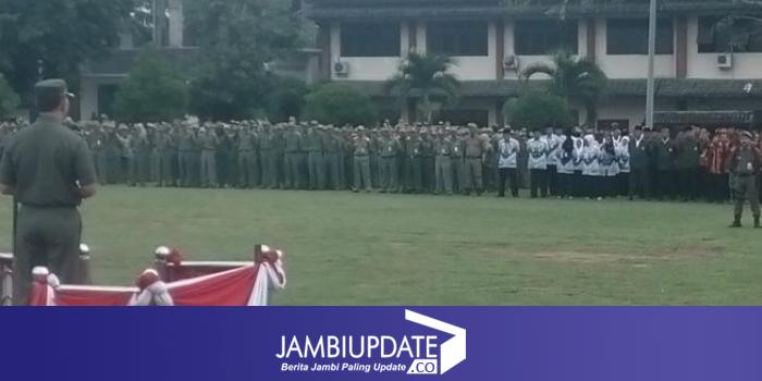 JAMBIUPDATE.CO, JAMBI-Apel siaga dalam rangka deklarasi penolakan Terorisme dan radikalisme, dilaksanakan di lapangan balaikota Jambi pagi ini, kamis (21/1).