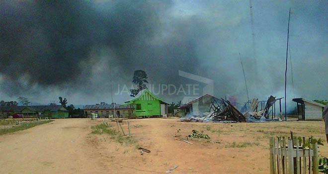 "Kejadiannya tadi (23/2) pagi. Kantor dan barak serta gudang pupuk milik PT LAJ juga dibakar masa yang jumlahnya kurang lebih 300 orang" ujar warga yang enggan disebutkan namanya.