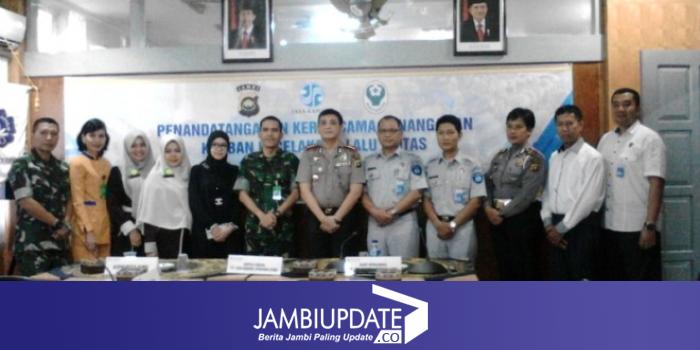 JAMBIUPDATE, JAMBI - PT. Jasa Raharja (Persero) Cabang Jambi kembali mengadakan MoU dengan Polresta dan 3 rumah sakit yang berada di Kota Jambi Kamis (24/3). Ketiga rumah sakit ini adalah RS.Bratanata, RS.Mayang Medical Centre (MMC) dan RS. Arafah.