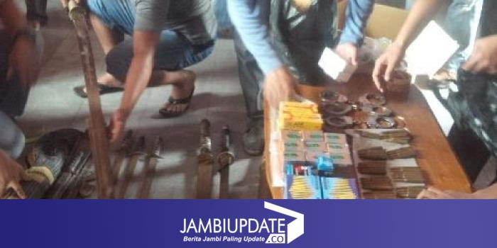 Diketahui, penggerebekan di rumah BS yang berlokasi di Lorong Mas Indah, Kecamatan Jelutung, Kota Jambi, dilakukan oleh tim gabungan Polda Jambi, Polresta Jambi dan Polresta Palembang. Kasus ini merupakan pengembangan dari Polresta Palembang. Selain amunisi, juga diamankan belasan senjata tajam. (pds)