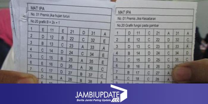 JAMBIUPDATE.CO, JAMBI - Ombusmam Perwakilan Jambi, Senin (9/5) menemukan adanya kunci jawaban soal Ujian Nasional yang beredar di salah satu SMP Negeri di Kota Jambi. Kunci jawaban pada hari pertama UN ini ditemukan di meja siswa.