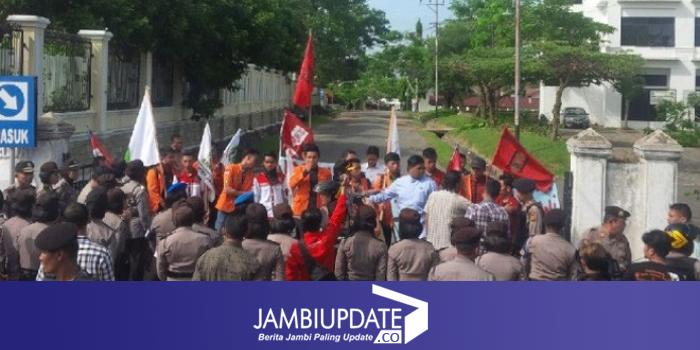 Mahasiswa Universitas Jambi, menggelar aksi demo di depan Kampus Unja Telanai.