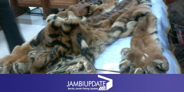 Laporan lp/A-130/VII/2016/jambi/ditreskrimsus. Tanggal 2 agustus. Adapun barang bukti diantaranya Kulit harimau 2, Kepala rusa 6, buntut harimau
