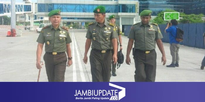 Komandan Korem 042/Garuda Putih, Kolonel Inf Refrizal saat tiba di Bandara Sultan Thaha Syaifuddin Jambi.