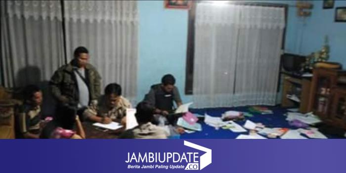 iklan Polisi saat menggeledah salah satu rumah tersangka sindikat pembuat dokumen palsu di Kerinci.