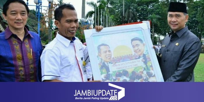 JAMBIUPDATE.CO, JAMBI - Walikota Jambi H. Syarif Fasha mendapat apresiasi dari Bank Tabungan Negara Jambi saat peringatan Hari Sumpah Pemuda ke 88 tahun 2016 yang berlangsung di lapangan utama kantor Walikota Jambi, Jumat (28/10).