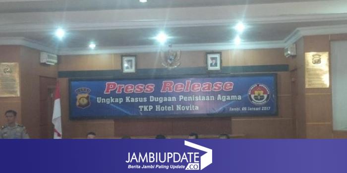 JAMBIUPDATE.CO, JAMBI Kasus ornamen Natal berlafaz Allah yang ditemukan di Hotel Novita, 23 Desember 2016 lalu, akhirnya menemui titik terang. Kepolisian Daerah Jambi yang menangani kasus ini menetapkan seorang tersangka. Dia adalah RZ (20), Pegawai Harian Lepas (PHL) di Hotel tersebut.