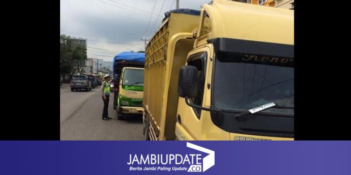 JAMBIUPDATE.CO, JAMBI - 8 truk pengangkut batubara, tadi pagi (17/3) ditilang anggota Sat PJR Polda Jambi. Mobil ini ditilang di kawasan Talang Banjar, Kota Jambi.