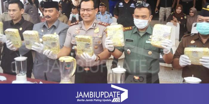 JAMBIUPDATE.CO, KUALATUNGKAL Barang bukti Narkotika jenis sabu-sabu seberat 8,256,99 dram atau senilai Rp16 miliar, yang ditangkap di Pelabuhan Marina 26 Febuari lalu dimusnahkan Polres Tanjung Jabung Barat. Pemusnahan dilakukan dengan cara diblender yang dicampur ditergen, Selasa (21/3).