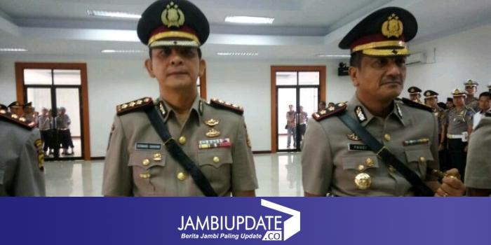 iklan  Kapolresta Jambi AKBP Achmad Fauzi SIK, (kanan) menggantikan Kombes Pol Bernard Sibarani (kiri).
