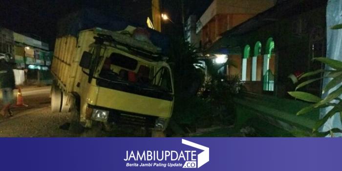 JAMBIUPDATE.CO, JAMBI - Kecelakaan lalu lintas kembali terjadi di Kota Jambi. Jumat malam (12/5) sebuah truk bermuatan batubara menabrak pagar masjid di Kawasan Jalan Sultan Syahril, Kelurahan Talang Bakung, Kecamatan Jambi Timur. Peristiwa ini terjadi sekitar pukul 22.00 WIB. Tidak ada korban jiwa.