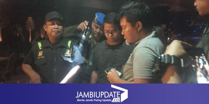 Di salah satu tempat hiburan malam di kawasan Pasar Jambi, seorang pria tampak arogan ketika melihat kedatangan petugas.