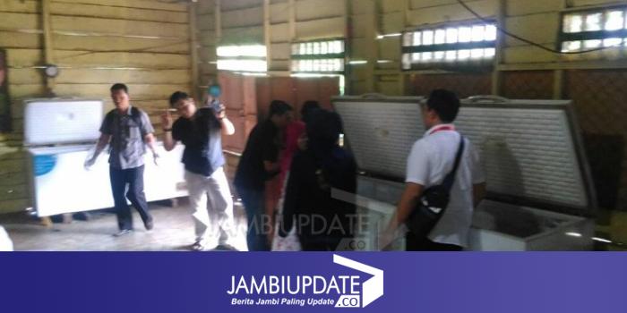 JAMBIUPDATE.CO, JAMBI - Tim gabungan Ditreskrimsus Polda Jambi, Satpol PP, Dinas Peternakan, Selasa (20/6) menggerebek salah satu gudang yang berlokasi di Jalan Lingkar Barat, Kota Jambi. Hasilnya, dua ton daging babi diamankan.
