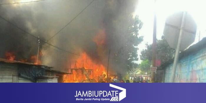JAMBIUPDAT.CO, JAMBI - Kebakaran hebat yang terjadi di kawasan Telanai Pura, Kota Jambi, tepatnya di lorong karya maju meratakan 8 kios dan membakar dua rumah, Selasa (27/6).