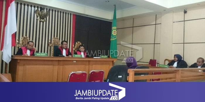 Sidang digelar di Pengadilan Tipikor Jambi. Selain pidana penjara, dalam tuntutannya, JPU juga mengenakan terdakwa dengan denda Rp50 juta subsidair 6 bulan penjara, dan uang pengganti kerugian negara Rp184 juta subsidair 6 bulan kurungan penjara.