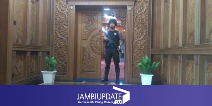 Pantauan Jambi update.co, tampak ada beberapa personil kepolisian berjaga di depan pintu ruang kerja gubernur Jambi.