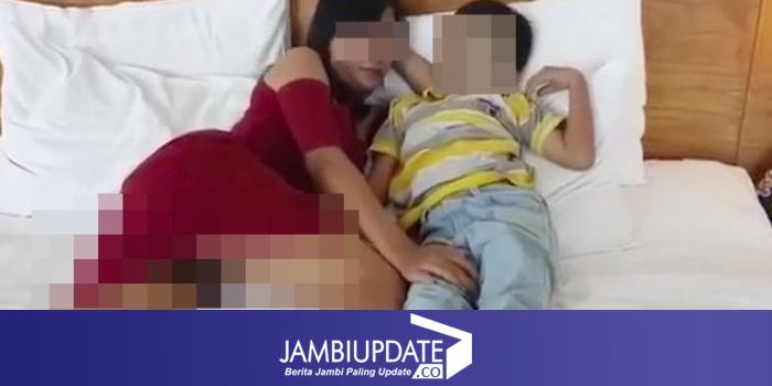 Selanjutnya, wanita cantik yang diperkirakan berusia 20 tahun itu masuk ke dalam kamar bersama si bocah. Keduanya berbaring di atas ranjang, kemudian melakukan adegan intim.