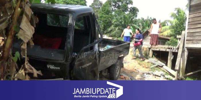 JAMBIUPDATE.CO, SENGETI - Kejadian kecelakaan lalu lintas kembali terjadi di wilayah Kabupaten Muarojambi. Kali ini, mobil carry pick up menabrak teras rumah warga hingga hancur.