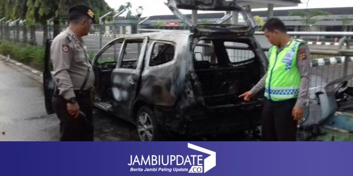 JAMBIUPDATE.CO, JAMBI - Satu unit mobil terlibat laka lantas di kawasan Bandara lama Jambi pagi tadi (5/3). Bahkan, mobil Grand Livina BH 1640 NC yang terlibat laka itu terbakar.