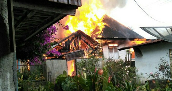 JAMBIUPDATE.CO, KERINCI Kebakaran kembali terjadi di wilayah Kabupaten Kerinci, kali ini dua unit rumah warga di Desa Simpang Tugu Macan Kersik Tuo, Kecamatan Kayu Aro ludes terbakar pada Minggu (25/03).