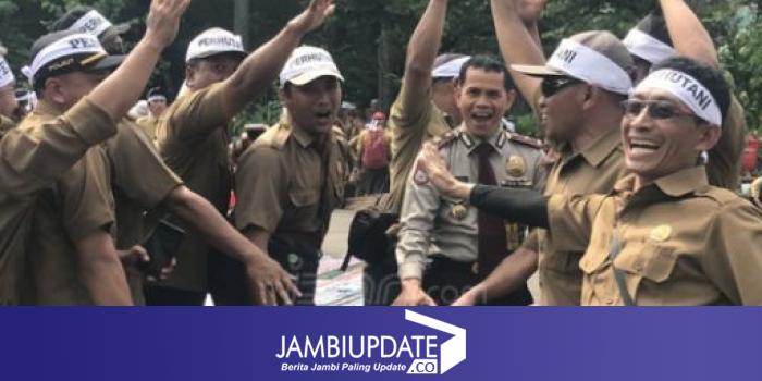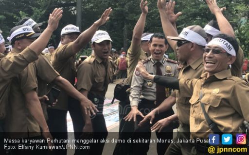 JAMBIUPDATE.CO, JAKARTA - Ribuan karyawan Perhutani dari sejumlah daerah menggelar aksi demo di sekitaran Monas, Gambir, Jakarta Pusat. Mereka berdemo menuntut kenaikan gaji.