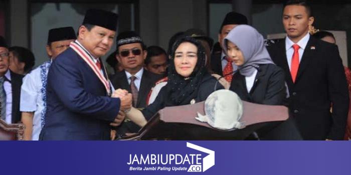 JAMBIUPDATE.CO, JAKARTA - Ketua Umum Partai Gerindra Prabowo Subianto mendapat penghargaan Star of Bung Karno dari Universitas Bung Karno (UBK). Penghargaan tersebut diberikan langsung oleh Pendiri Yayasan UBK Rachmawati Soekarnoputri.