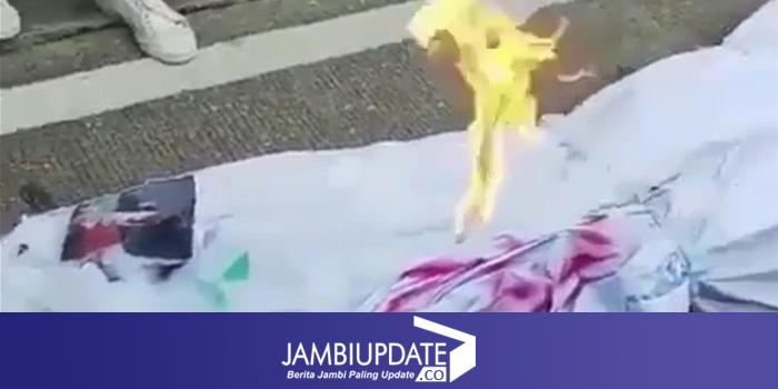 Aksi turunkan Jokowi diwarnai dengan bakar bonekang pocong dan foto Jokowi di depan kantor DPRD Riau. Screenshot JPNN.com