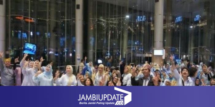 Sekitar 300 orang dari berbagai kalangan terlihat sangat kompak mengenakan baju biru seperti Sandiaga.