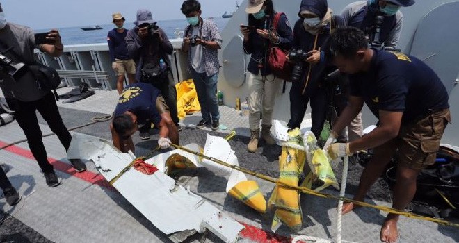 Tak lama setelah dua orang penyelam turun, mereka kembali lagi ke permukaan dan meminta tali yang mereka bawa sebelumnya untuk diangkat. Setelah ditarik, terlihat potongan-potongan pesawat yang salah satu bagiannya terdapat satu buah pakaian yang menempel.