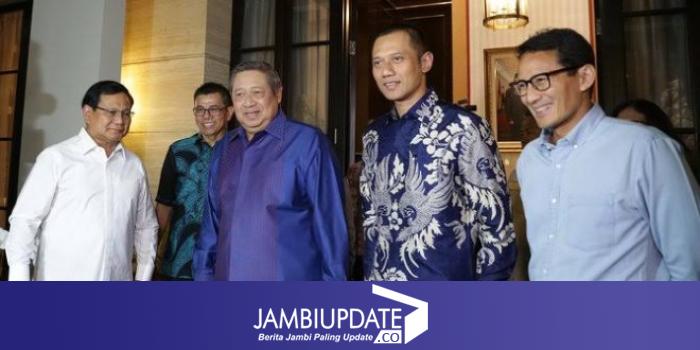 JAMBIUPDATE.CO - Pasangan Calon Presiden/Wakil Presiden RI Prabowo Subianto/Sandiaga Uno bertemu Ketua Umum DPP Partai Demokrat Susilo Bambang Yudhoyono (SBY) di kediaman Mega Kuningan, Jakarta, Jumat (21/12).