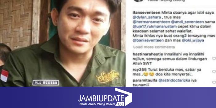 "Mohon doanya agar istri saya @dylan_sahara, mas @hermanseventeen, @andiseventeen dan @uje17_rukmanarustam cepat ketemu dalam keadaan sehat walafiat," sambungnya sambil menyeka air mata.