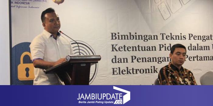 Acara Bimtek tersebut dihadiri pemateri dari Kementerian Kominfo RI Teguh Arifiyadi selaku Kasubdit Penyidikan dan Penindakan serta Albert Aruan sebagai kepala Seksi Penindakan Kementerian Kominfo RI