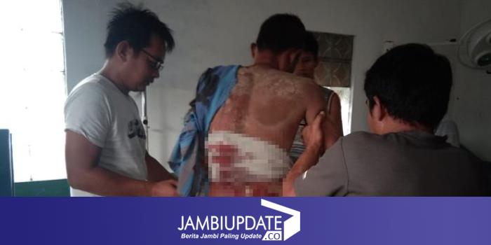 Ahmadi mengalami luka berat di bagian lengan sebelah kiri dan luka dibagian punggung setelah dibacok oleh Pendi. (Hadinata/ Jambiupdate)
