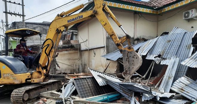 “Sudah lama diberitahukan agar jangan berjualan di jalan, dan harus berjulana di dalam pasar. Bangunan itu kita bongkar juga karena tidak memiliki izin,” kata Fajri.