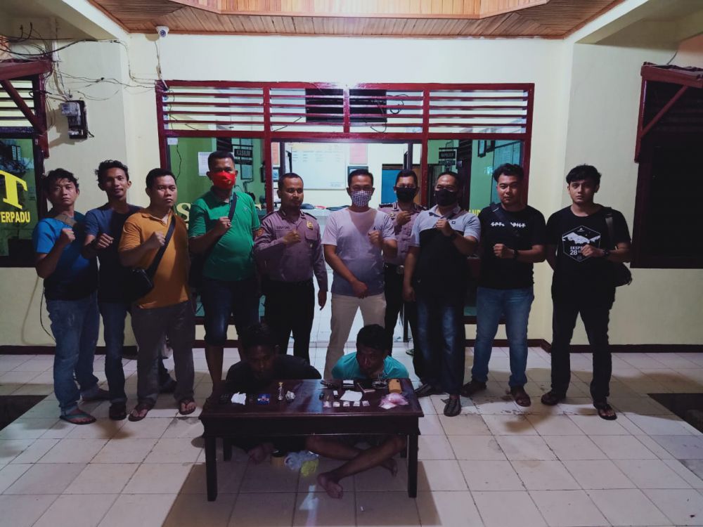 Penangkapan tersebut kata Kapolsek, berawal dari penangkapan tersangka AD. Dari hasil penggeledah, ditemukan paket kecil sabu yang disimpan dalam kotak rokok bersama alat hisap. Tersangka AD mengaku mendapat barang haram tersebut dari saudara SG yang diduga bandar.
