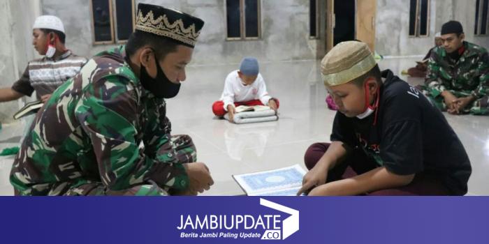 JAMBIUPDATE.CO, KUALATUNGKAL- Ilmu agama menjadi tiang dasar pendidikan akhlak seorang anak dalam kehidupan sehari-hari. Hal ini pula yang menjadi perhatian anggota Satgas TNI Manunggal Membangun Desa (TMMD) ke-108 Kodim 0419/Tanjab sehingga ikut serta dalam mengajarkan anak-anak di Desa Labuhan Pering tentang ilmu agama, salah satunya belajar mengaji.